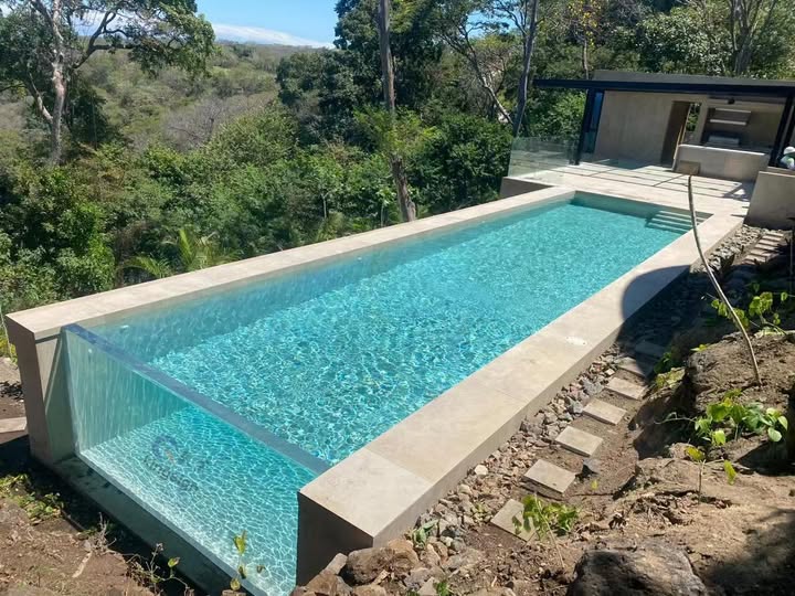 Properties fisik akrilik nemtokake manawa iku mung pilihan kanggo bahan kolam renang transparan. Nduwe kaluwihan ing ngisor iki: